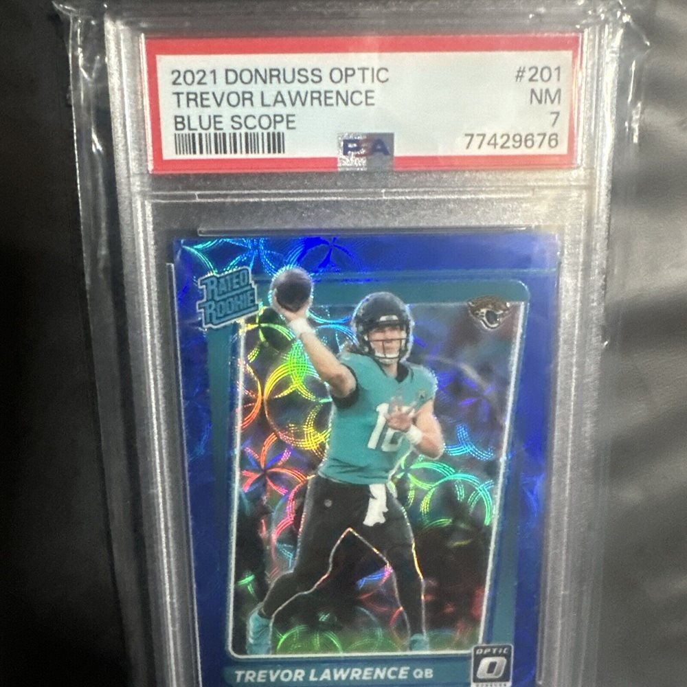 Trevor Lawrence 2021 Donruss Optic Rated Rookie Blue Scope PSA 7