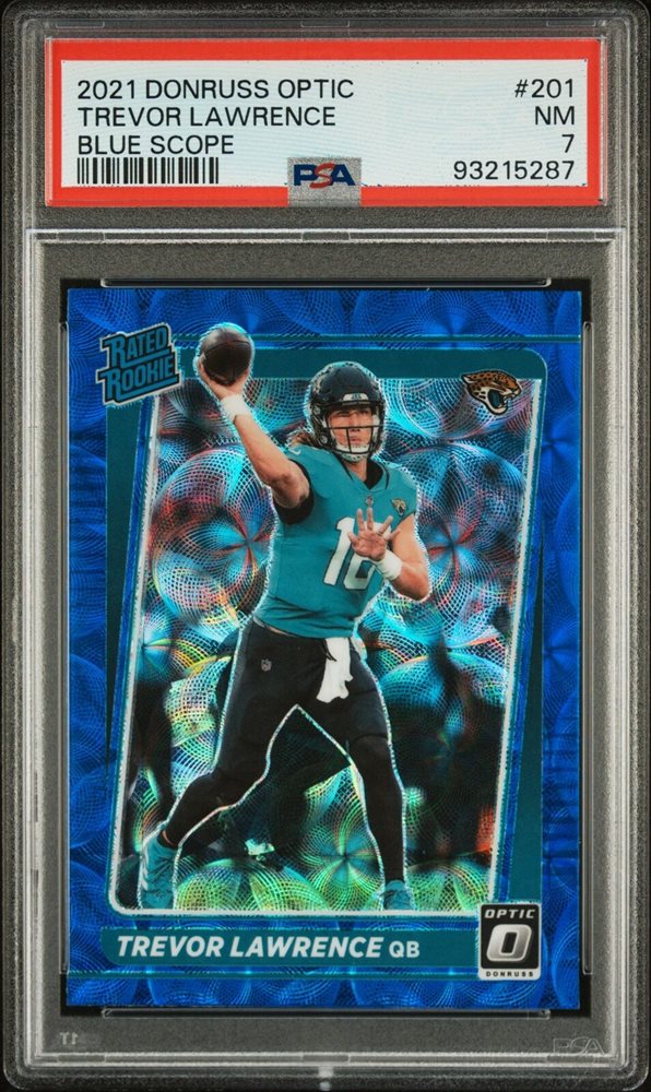 2021 PANINI DONRUSS OPTIC BLUE SCOPE #201 TREVOR LAWRENCE ROOKIE RC PSA 7