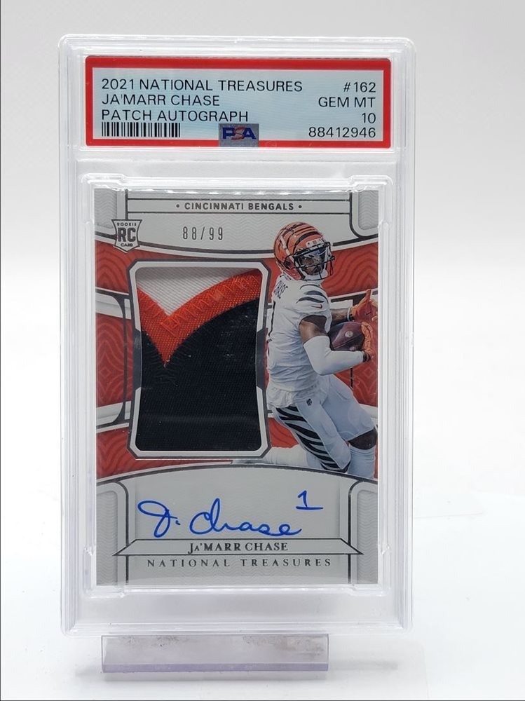 JA'MARR CHASE 2021 NATIONAL TREASURES RPA ROOKIE PATCH RC AUTO /99 PSA 10 Q1496