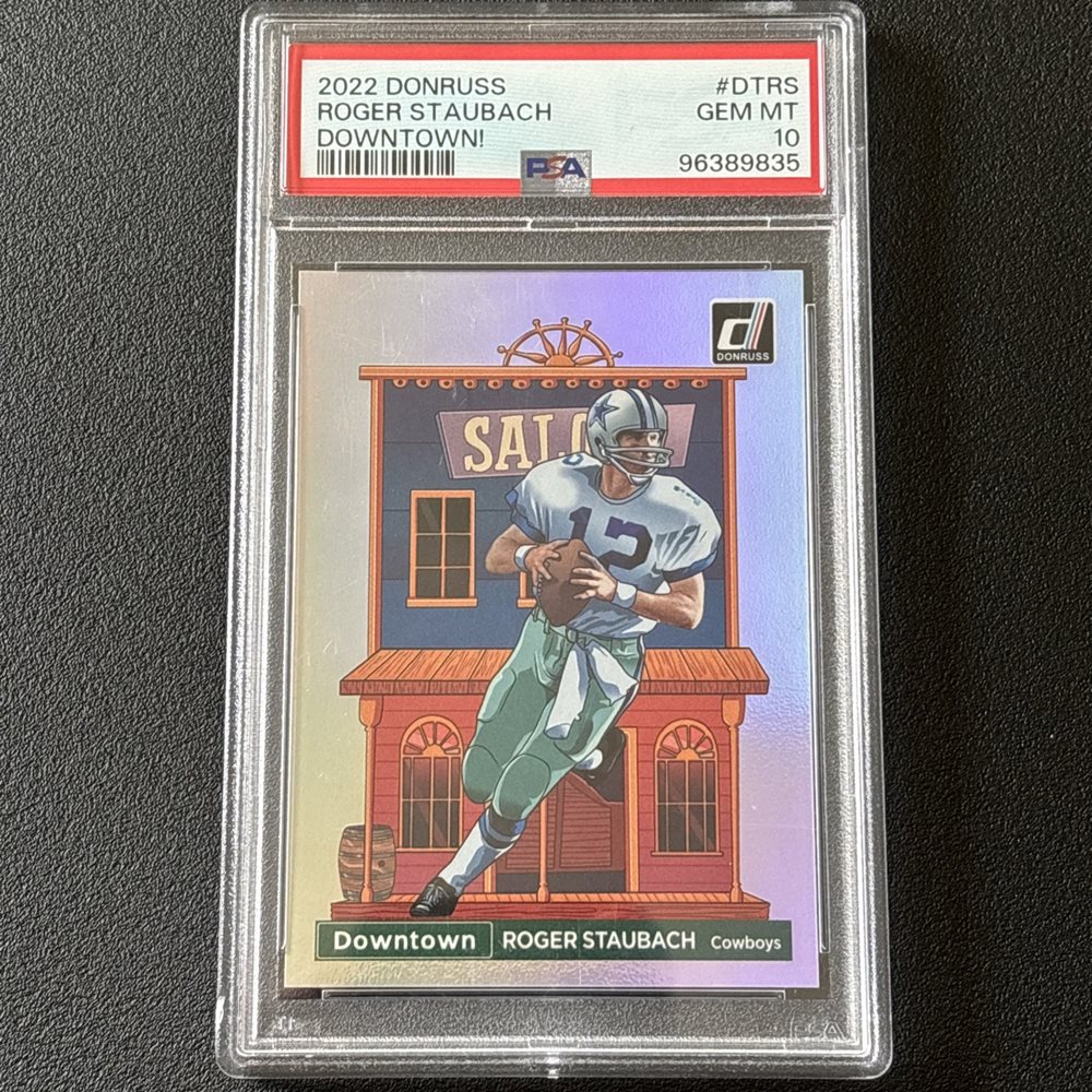 2022 PANINI DONRUSS DOWNTOWN #DTRS ROGER STAUBACH PSA 10 DALLAS COWBOYS