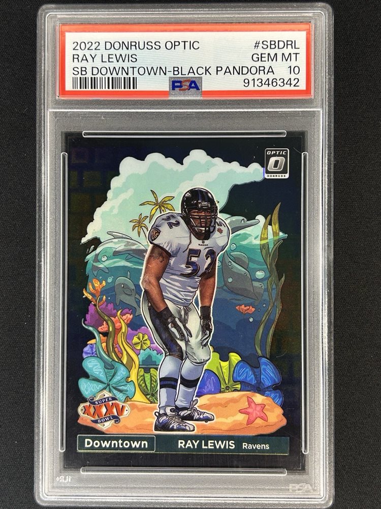 2022 Donruss Optic RAY LEWIS 06/25 Black Pandora Super Bowl Downtown! SSP PSA 10