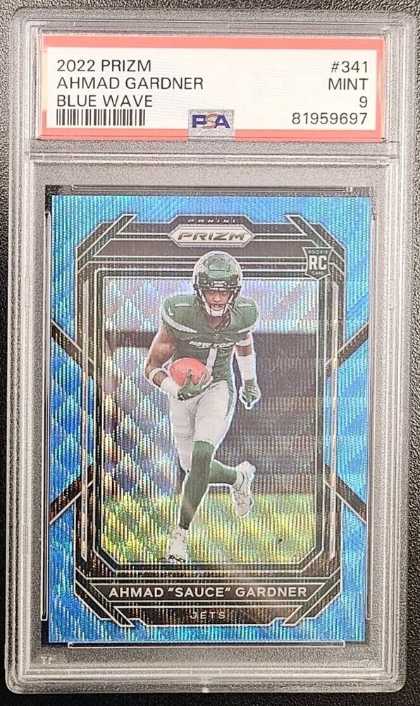 2022 PANINI PRIZM AHMAD SAUCE GARDNER BLUE WAVE /199 RC ROOKIE GRADED PSA-9*YCC*