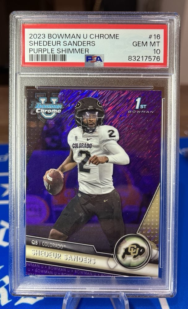 2023 Bowman U Chrome Shedeur Sanders 1st RC Purple Shimmer Refractor PSA 10 GEM