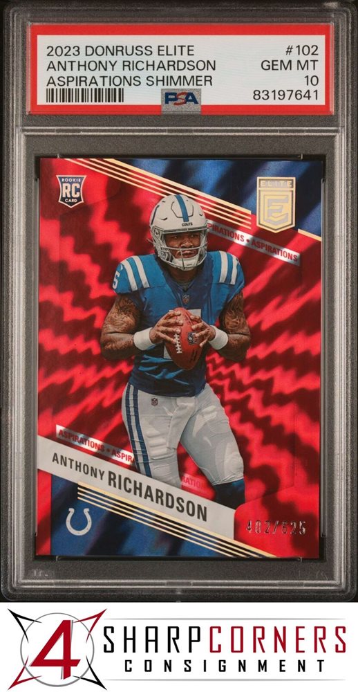 2023 DONRUSS ELITE ASPIRATIONS SHIMMER #102 ANTHONY RICHARDSON RC #/625 PSA 10