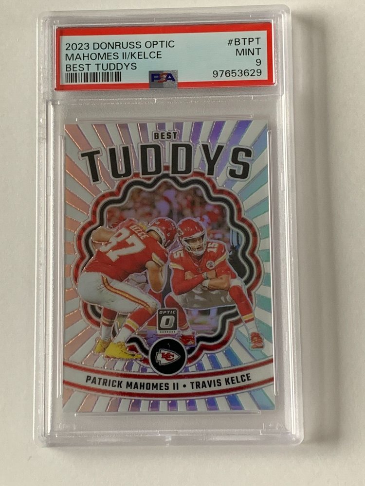 2023 Donruss Optic Patrick Mahomes II Travis Kelce Best Tuddy's Prizm SP PSA 9