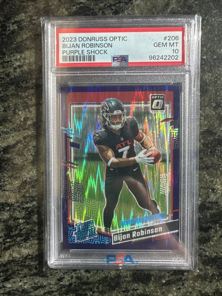 2023 Donruss Optic Bijan Robinson Purple Shock Prizm RC Rated Rookie #206 PSA 10