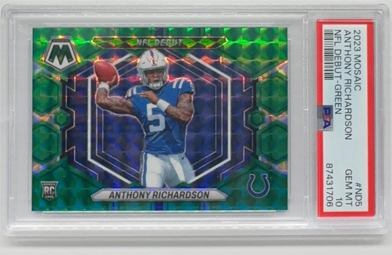 2023 Mosaic Anthony Richardson NFL Debut Green Mosaic Prizm RC #ND5 PSA 10