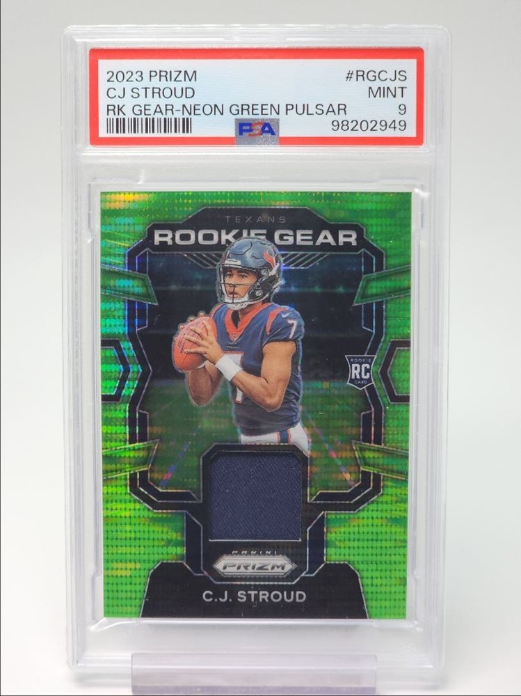 C.J. STROUD 2023 PRIZM ROOKIE GEAR PATCH NEON GREEN PULSAR RC PSA 9 Q2628