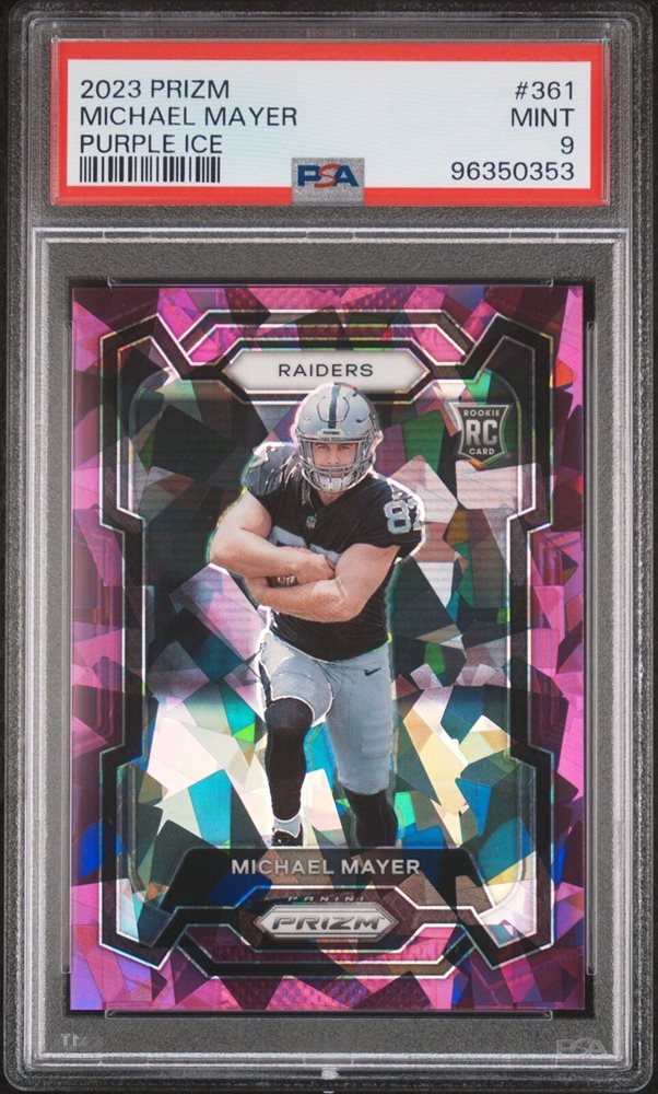 2023 PANINI PRIZM PURPLE ICE #361 MICHAEL MAYER ROOKIE RC 85/225 PSA 9