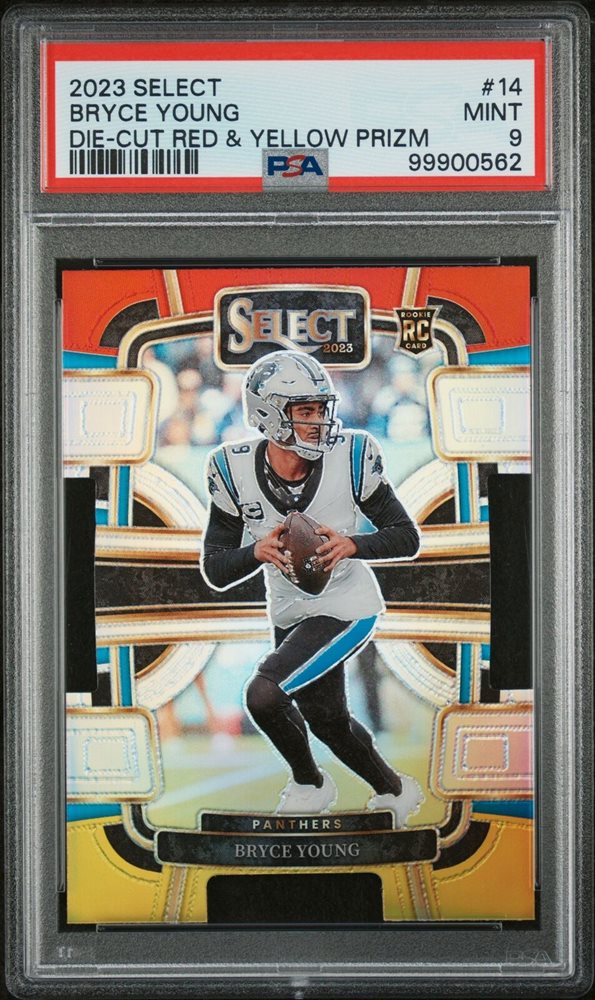 2023 PANINI SELECT DIE-CUT RED & YELLOW PRIZM #14 BRYCE YOUNG ROOKIE RC PSA 9