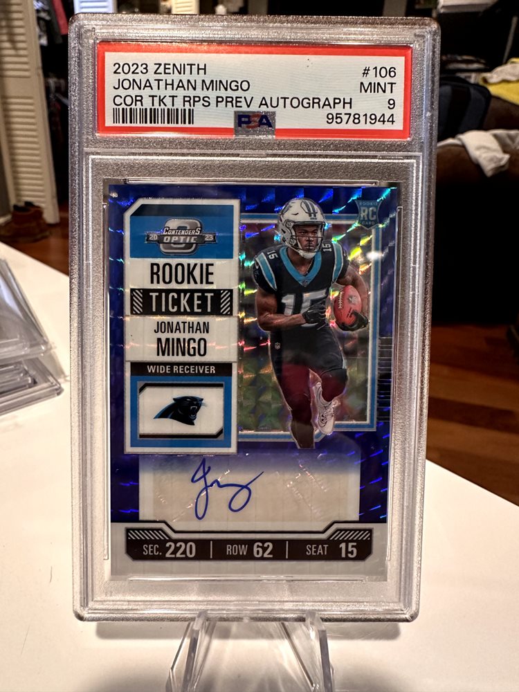 Auction Prices Realized Football Cards 2023 PANINI ZENITH CONTENDERS OPTIC ROOKIE TICKET RPS PREVIEW AUTOGRAPHS Jonathan Mingo