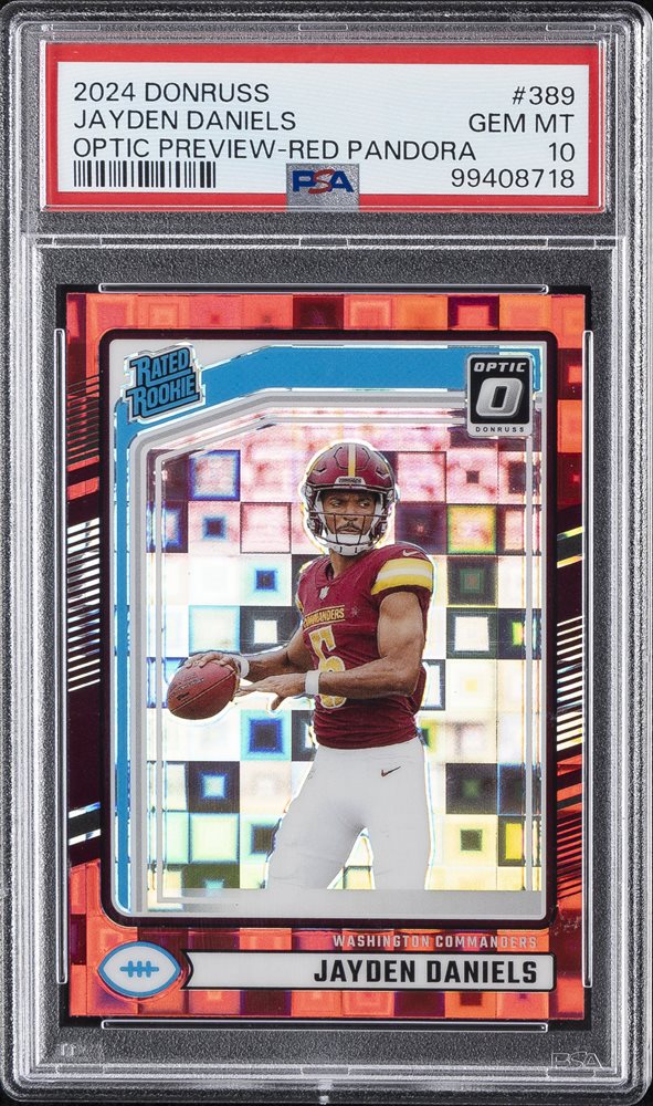 2024 PANINI DONRUSS OPTIC PREVIEW-RED PANDORA #389 JAYDEN DANIELS ROOKIE PSA 10