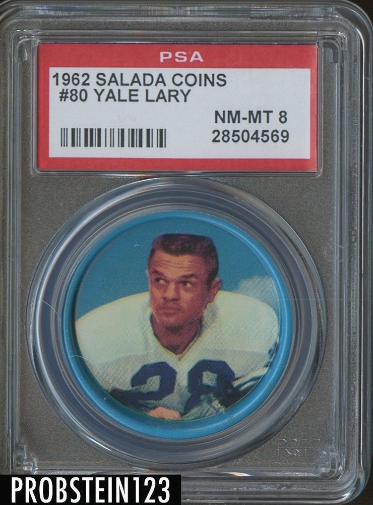 1962 Salada Coins Football #80 Yale Lary HOF Lions PSA 8 NM- MINT