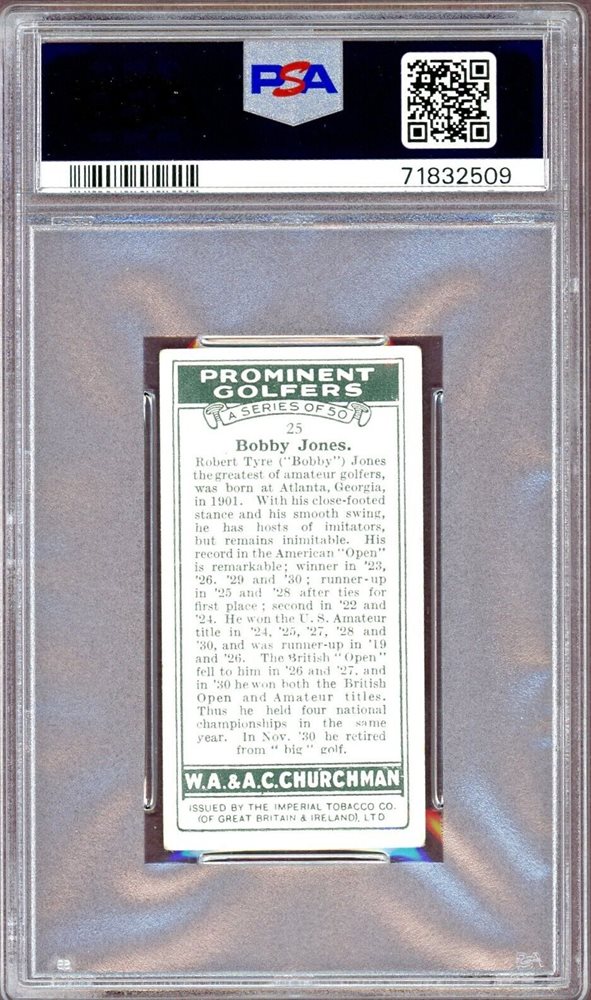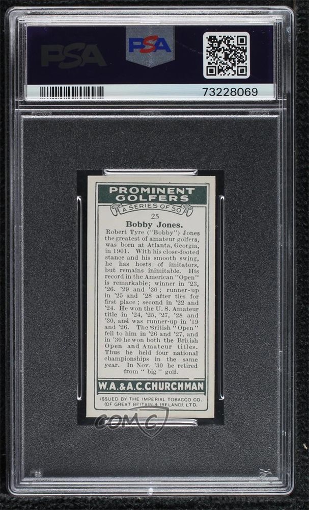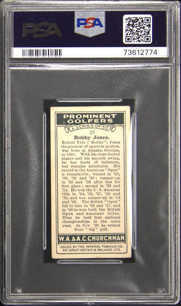 Auction Prices Realized Golf Cards 1931 W.A. & A.C. CHURCHMAN PROMINENT GOLFERS-SMALL Bobby Jones
