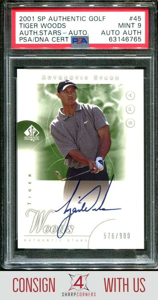 2001 SP AUTHENTIC STARS #45 TIGER WOODS #/900 PSA 9 DNA AUTO AUTH A3126653-765
