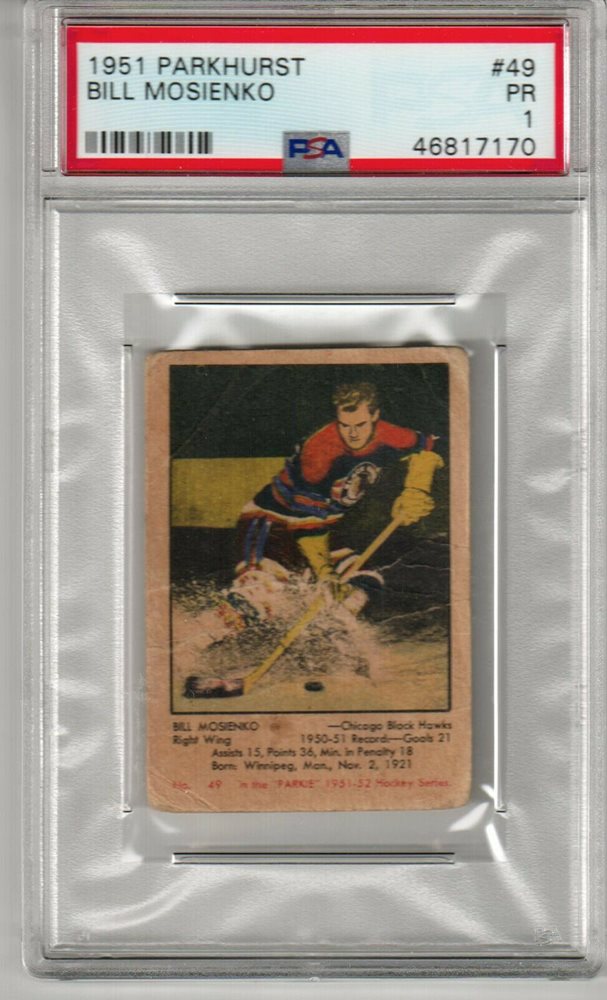 1951 Parkhurst Hockey #49 Bill Mosienko Chicago Black Hawks PSA 1 Blackhawks