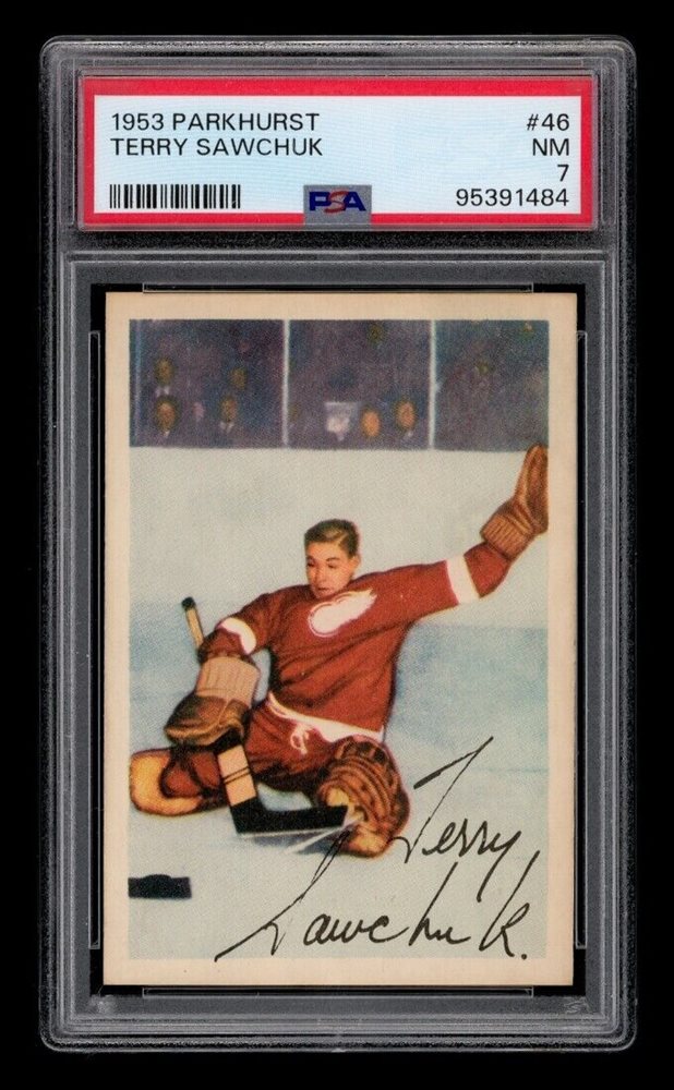 1953-54 Parkhurst Set-Break # 46 Terry Sawchuk PSA 7 NM