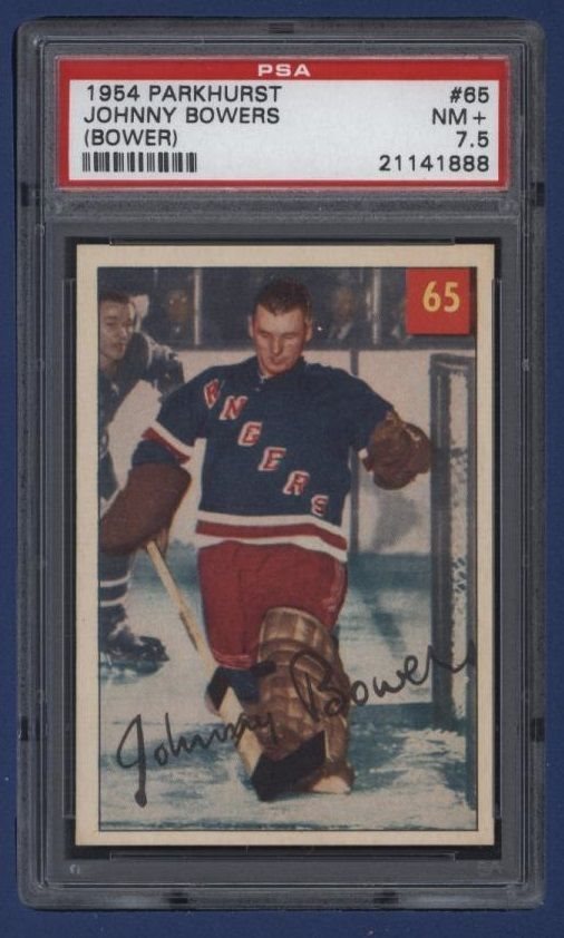 1954-55 Parkhurst Johnny Bower (rc) #65 Graded PSA 7.5 NM+ NY Rangers (HOF) LOOK