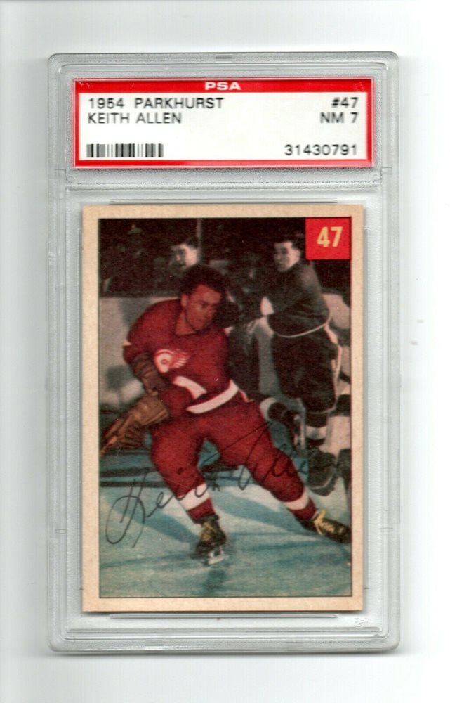 1954 Parkhurst #47 KEITH ALLEN Rookie RC Graded PSA 7 NM Red Wings / Flyers
