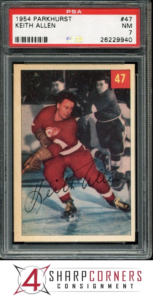 1954 PARKHURST #47 KEITH ALLEN RC RED WINGS HOF PSA 7 SET BREAK