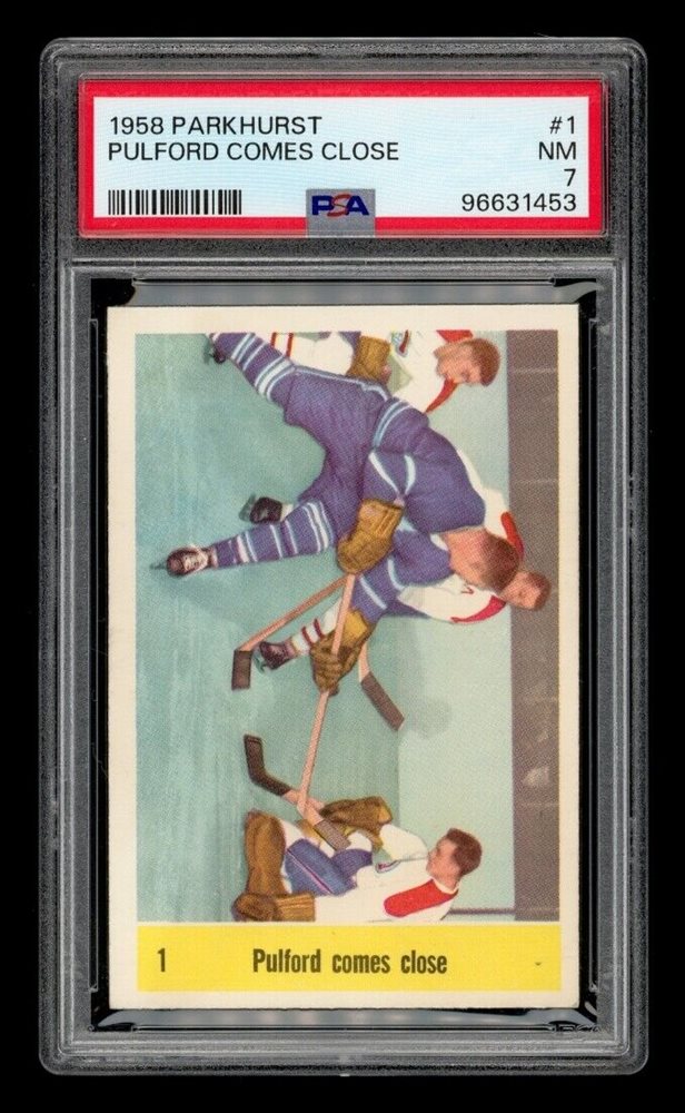 1958-59 Parkhurst Set-Break # 1 Pulford Comes Close PSA 7 NM