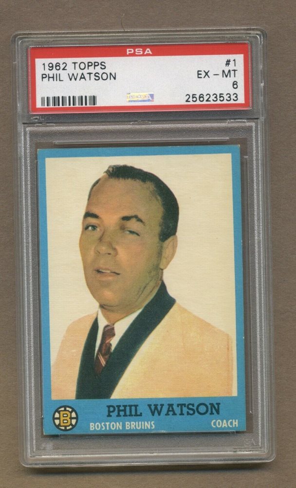 1962-63 Topps Hockey No. 1 Bruins Phil Watson PSA Ex-Mt