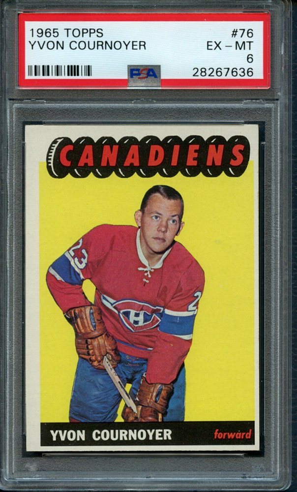1965-66 TOPPS HOCKEY #76 YVON COURNOYER ROOKIE RC - PSA 6 - EXMT (SLOTH55)