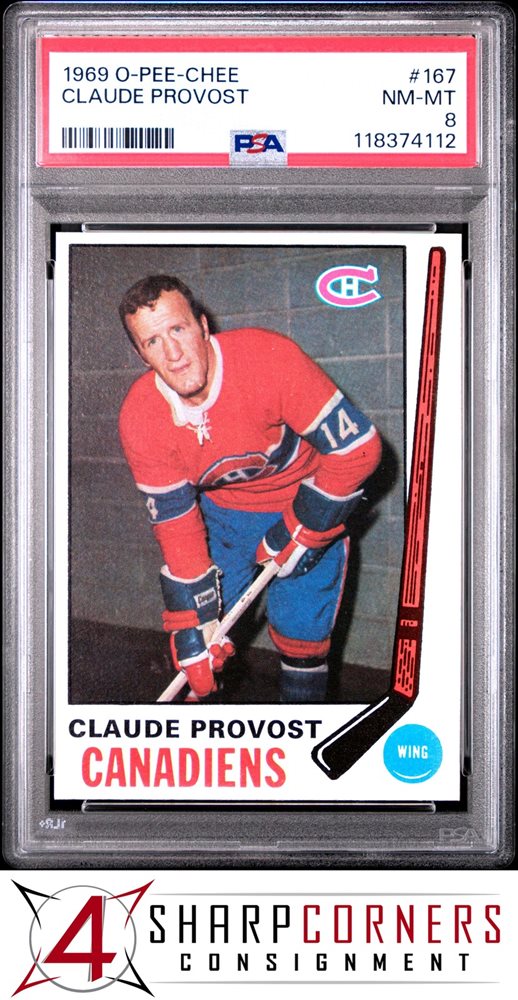 1969 O-PEE-CHEE #167 CLAUDE PROVOST CANADIENS PSA 8