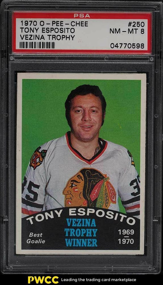 1970 O-Pee-Chee Hockey Tony Esposito VEZINA TROPHY #250 PSA 8 NM-MT