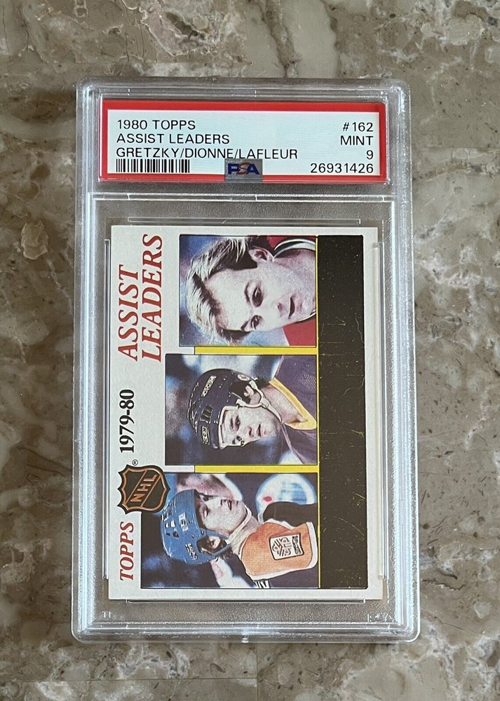 1980 TOPPS Assist Ldrs WAYNE GRETZKY/MARCEL DIONNE/GUY LAFLEUR #162 PSA 9 Mint