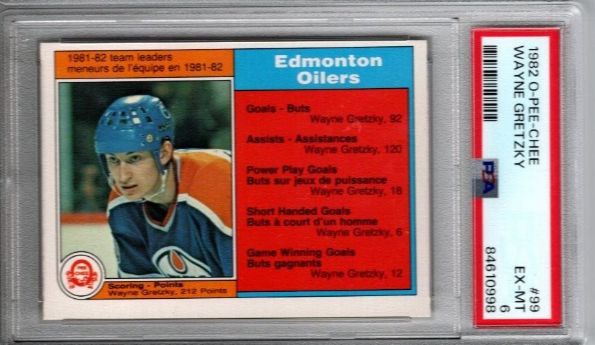 1982 O-PEE-CHEE OPC 99 WAYNE GRETZKY OILERS SCORING LEADERS PSA EX-MT 6