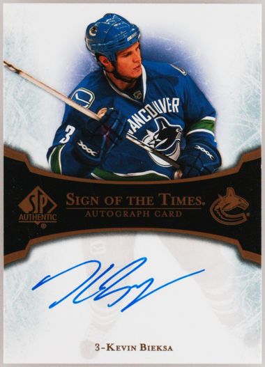 Auction Prices Realized Hockey Cards 2007 SP AUTHENTIC SIGN OF THE TIMES Kevin Bieksa