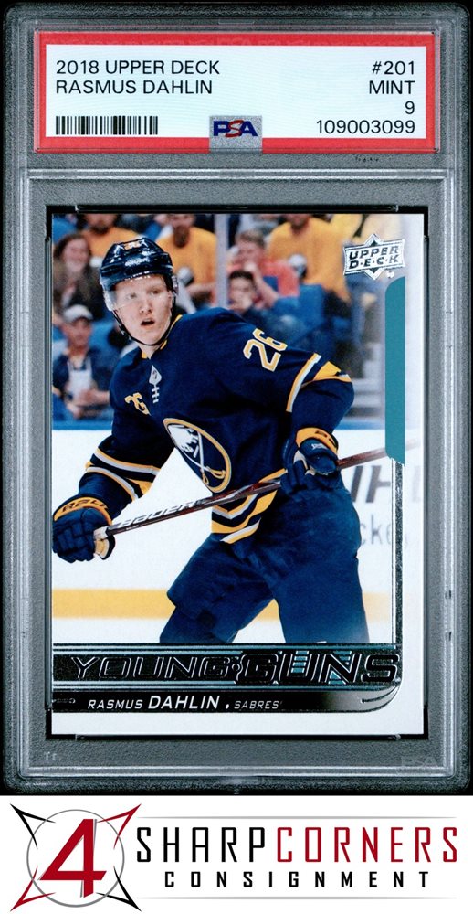 2018 UPPER DECK #201 RASMUS DAHLIN RC YOUNG GUNS SABRES PSA 9