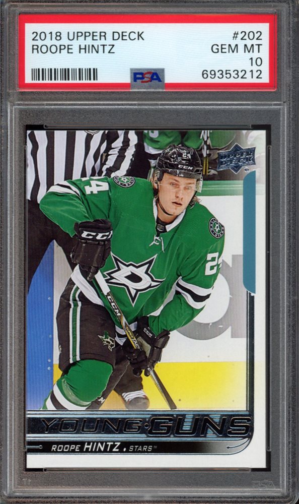 2018 UPPER DECK #202 ROOPE HINTZ YOUNG GUNS RC ROOKIE PSA 10