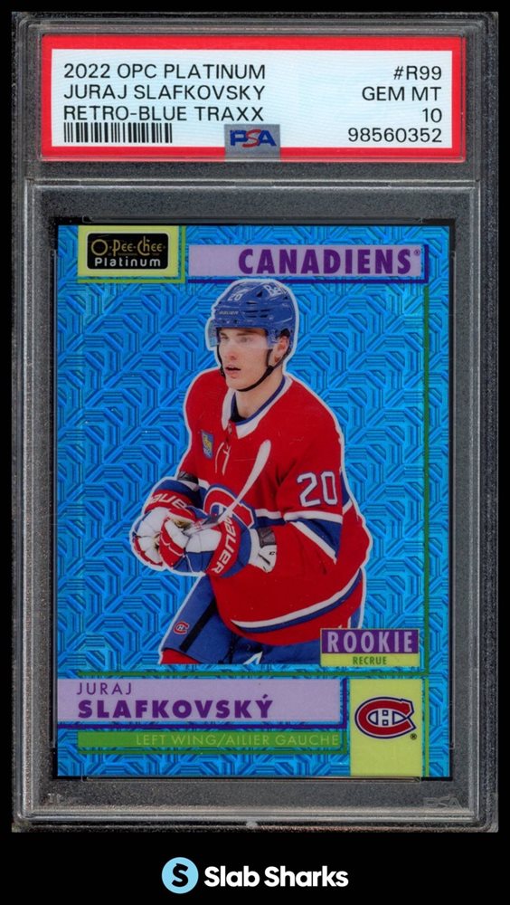 2022 O-PEE-CHEE PLATINUM #R-99 JURAJ SLAFKOVSKY RETRO BLUE TRAXX RC /199 PSA 10