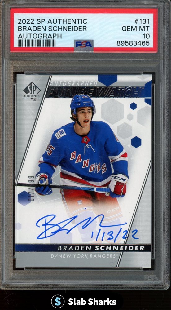 2022 SP AUTHENTIC #131 BRADEN SCHNEIDER FUTURE WATCH AUTO INSCRIBED /999 PSA 10