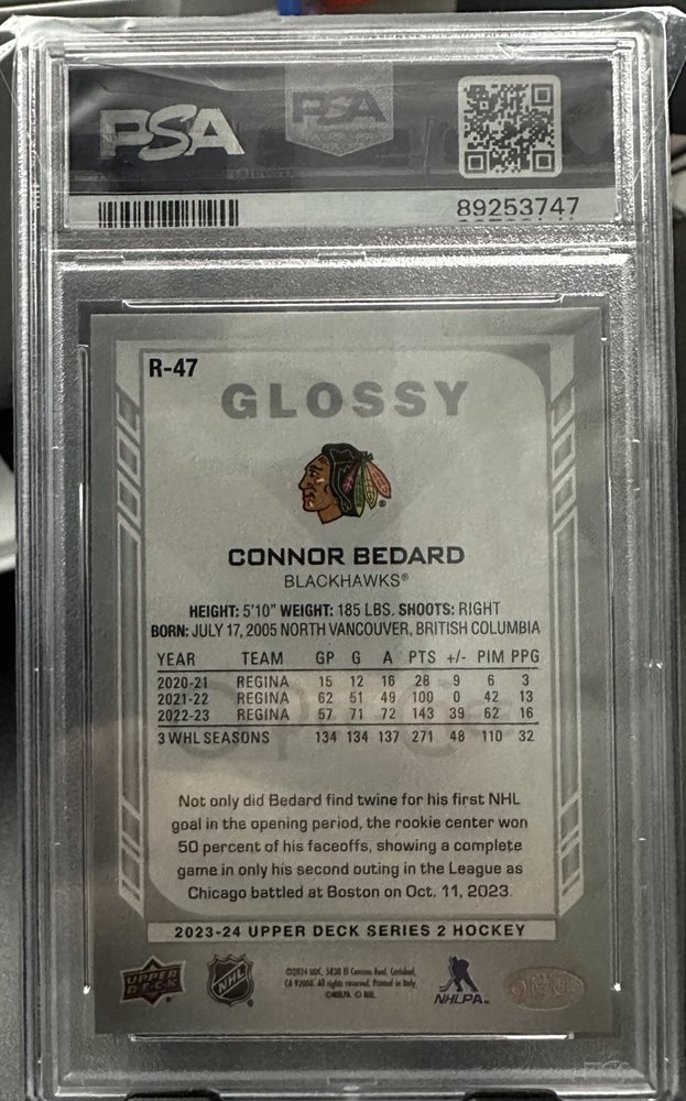 2023-24 Upper Deck Connor Bedard OPC Glossy, PSA 10