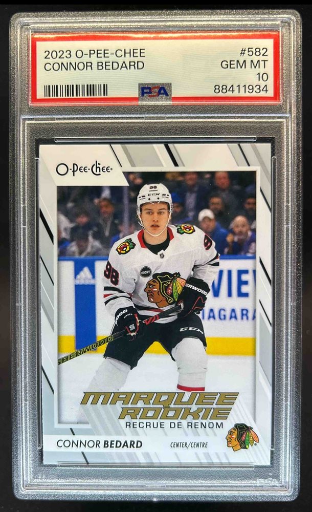 2023 O-Pee-Chee Connor Bedard Rookie RC #582 Blackhawks PSA 10
