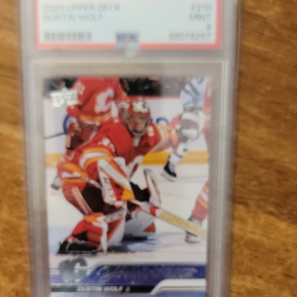 2023-24 UPPER DECK YOUNG GUNS DUSTIN WOLF ROOKIE CALGARY PSA 9 FLAMES #210