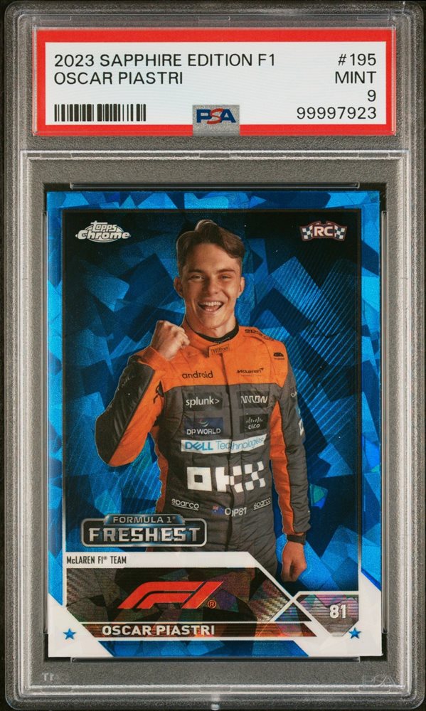 2023 TOPPS CHROME FORMULA 1 SAPPHIRE EDITION #195 OSCAR PIASTRI RC PSA 9