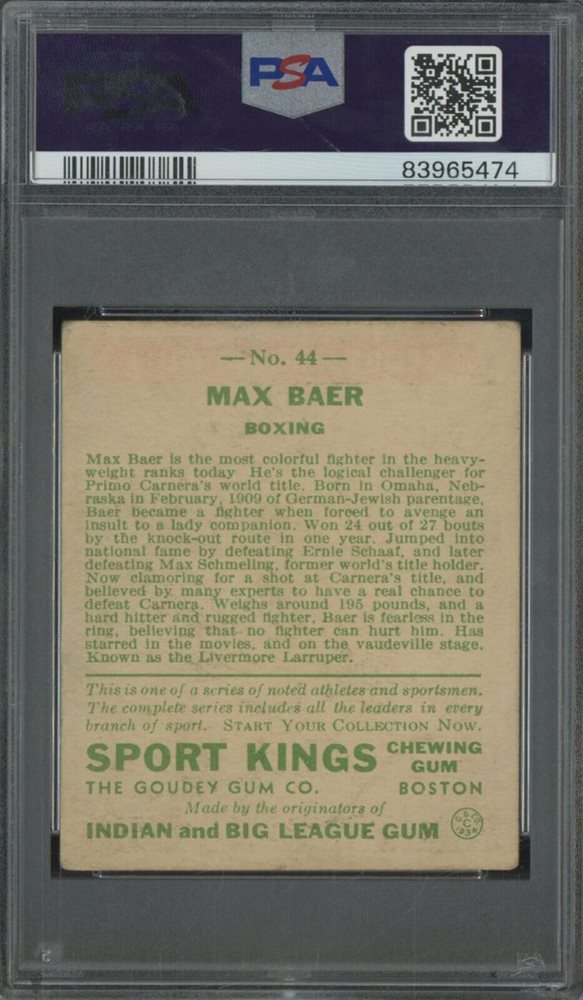 1933 Goudey Sport Kings Boxing #44 Max Baer PSA 3 VG