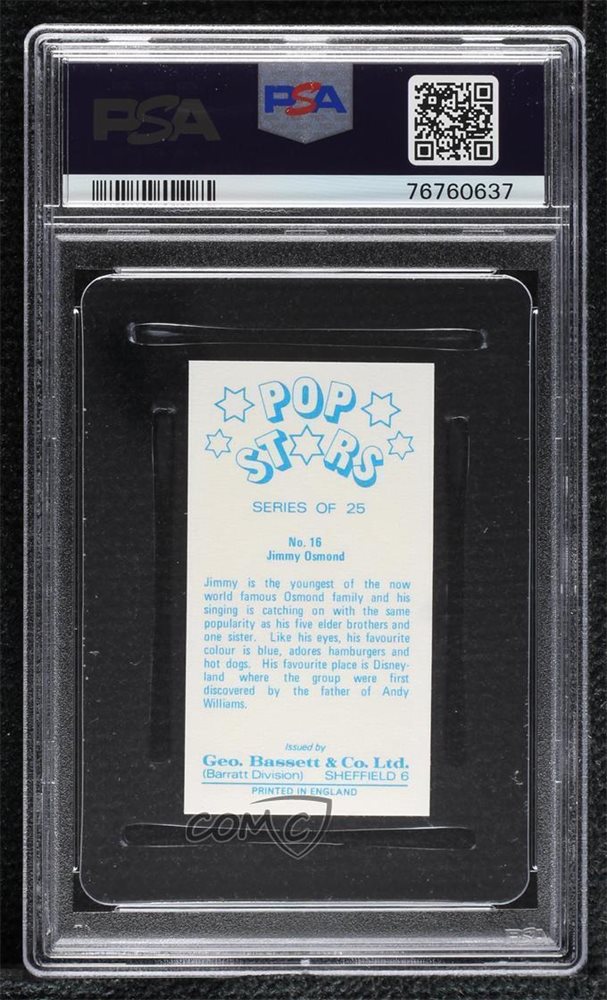 Auction Prices Realized Non-Sport Cards 1974 GEO.BASSETT & CO. POP STARS Jimmy Osmond