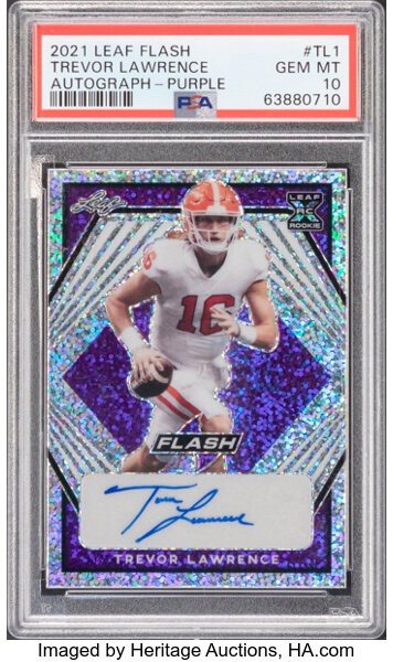 2021 Leaf Flash Trevor Lawrence (Base XRC Silver Autograph-Purple) Rookie #BA-TL1 PSA Gem Mint 10 - #'d 2/50....