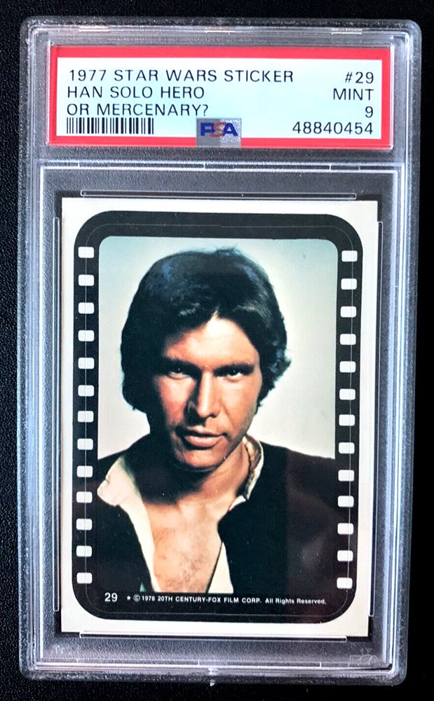 1977 STAR WARS STICKER #29 Han Solo Hero or Mercenary? PSA 9. Low Pop