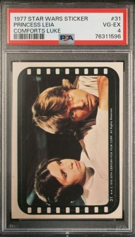 1977 STAR WARS STICKERS #31 PRINCESS LEIA COMFORTS LUKE PSA 4