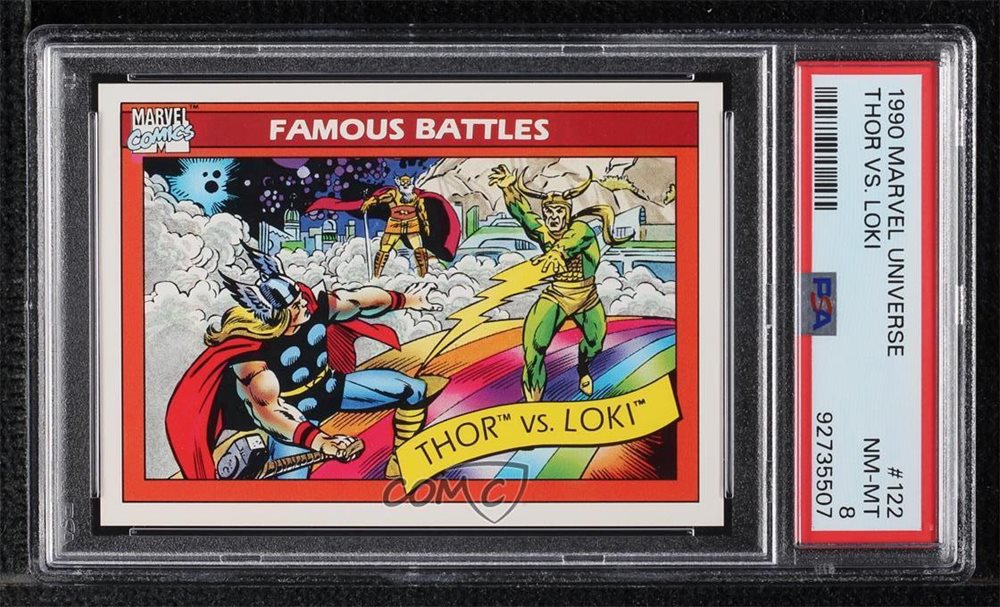 1990 Impel Marvel Universe Famous Battles Thor vs Loki #122 PSA 8 NM-MT