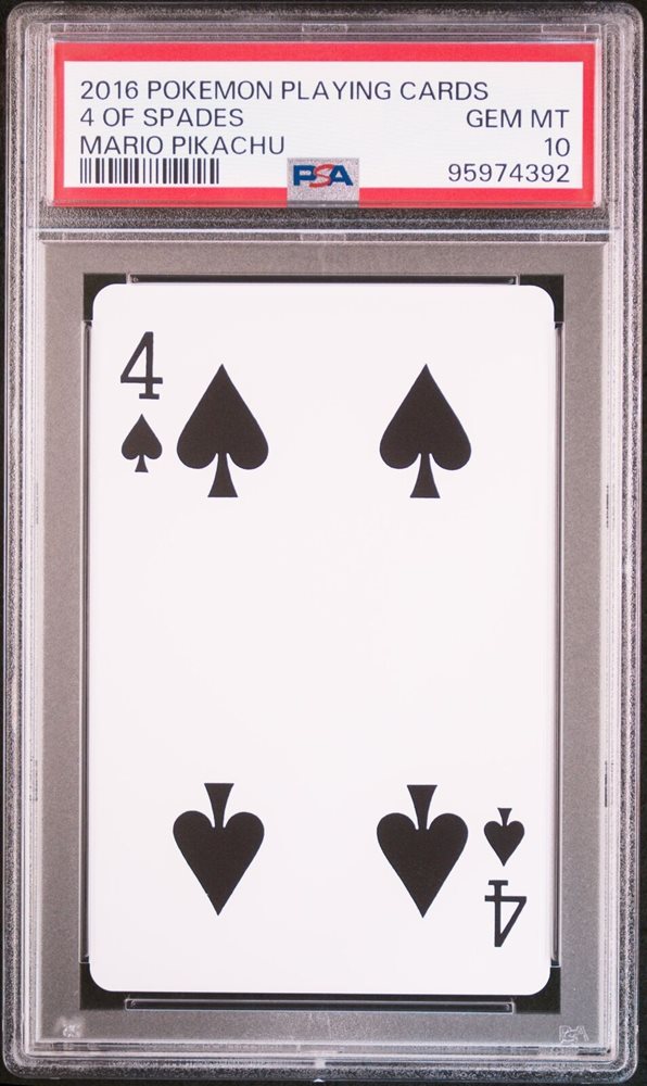 2016 POKEMON PLAYING CARDS MARIO PIKACHU 4 OF SPADES PSA 10