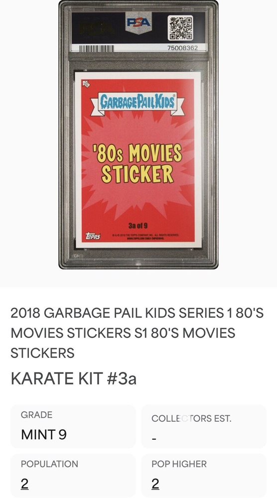 Auction Prices Realized Non-Sport Cards 2018 GARBAGE PAIL KIDS SERIES 1 80'S MOVIES STICKERS Karate Kit