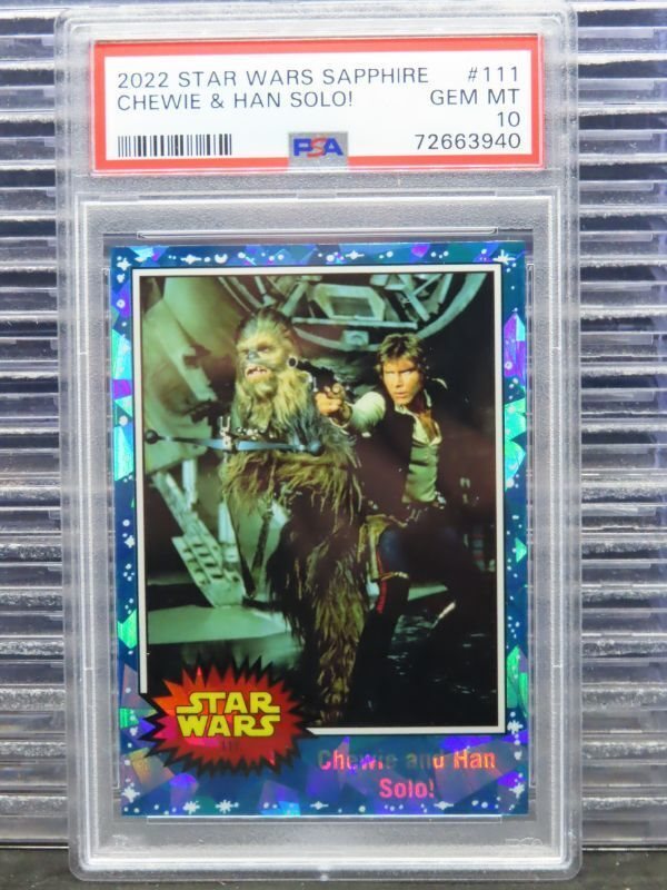 2022 Topps Chrome Star Wars Sapphire Chewie and Han Solo! #111 PSA 10