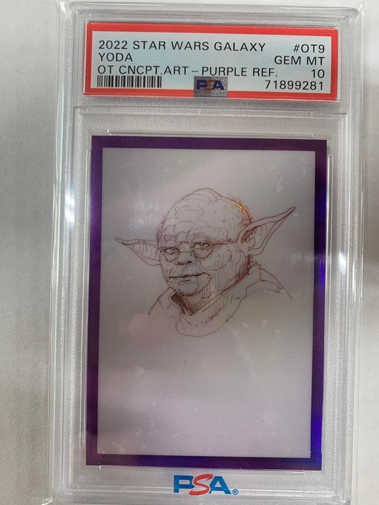 YODA - 2022 TOPPS CHROME STAR WARS GALAXY - CONCEPT ART - PURPLE #/50 - PSA 10 -